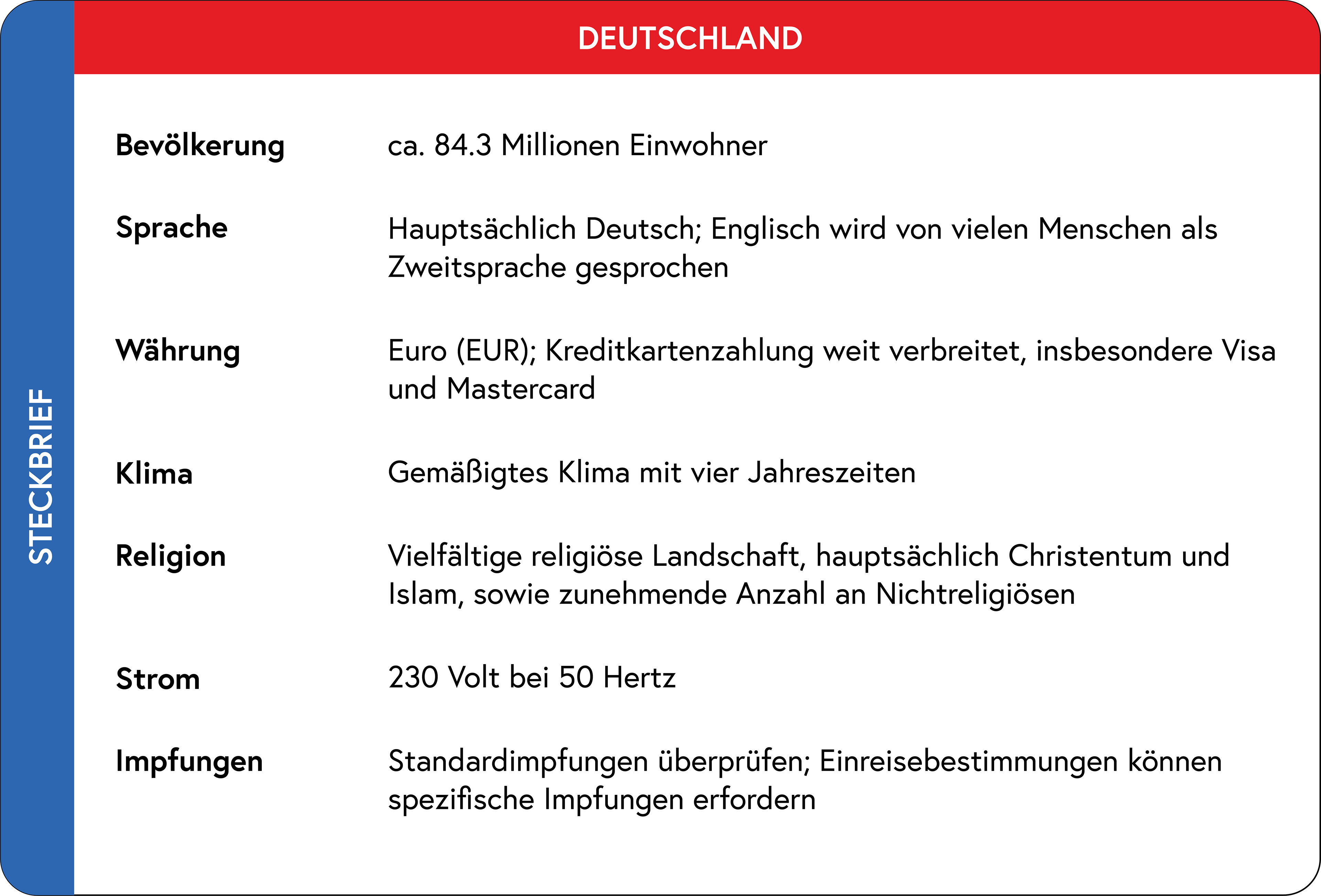 Aus touristischer Sicht hat Deutschland eine Menge zu bieten. Das Land ist reich an bekannten und lebendigen Großstädten, die Besucher aus aller Welt anziehen. Zu den herausragenden Beispielen zählen die pulsierende Metropole Berlin mit ihrer facettenreichen Kultur- und Clubszene, die lebendige Finanzhauptstadt Frankfurt am Main, die charmante Hansestadt Hamburg sowie München, das jährlich Millionen von Besuchern zum weltberühmten Oktoberfest lockt.
